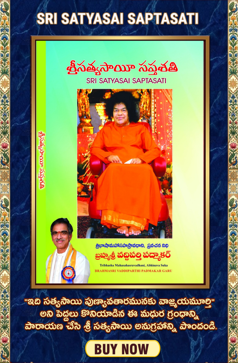 “ఇది సత్యసాయి పుణ్యావతారమునకు వాజ్మయమూర్తి ” అని పెద్దలు కొనియాడిన ఈ మధుర గ్రంధాన్ని పారాయణ చేసి శ్రీ సత్యసాయి అనుగ్రహాన్ని పొందండి.
